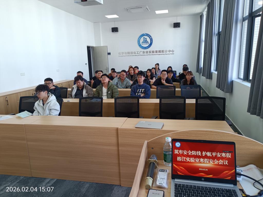 易国斌副主任在会上强调,寒假期间更要绷紧安全之弦,以最高标准、最严要求抓实抓细安全管理工作,并提出五项具体要求:一是规范仪器设备管理,严格执行预约使用流程,强化全周期运维与台账管理,确保设备安全可控。二是强化水电保障,密切跟踪揭阳校区水电运行状况,完善预案、提前备勤、快速响应,坚决杜绝跑冒滴漏与违规用电。三是严格学生动态报备,学生离校、留校及期间各类情况须第一时间向指导教师如实报告,保持联络畅通,严禁迟报、瞒报、谎报。四是落细假期安全闭环,离校前严格执行“五关”要求;春节返校后全面开展实验室安全卫生排查,核验水电与仪器设备状态,同步建立常态化安全检查长效机制。五是严守个人安全底线,外出务必结伴而行,往返途中注意交通与人身安全,切实保障自身健康与生命安全。